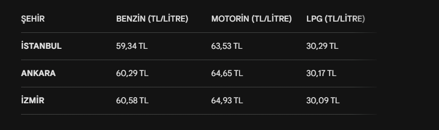Eşel mobil sonrası pompalarda oluşan yeni fiyat tablosu şu şekilde şekillendi: